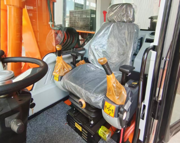 Комфортное кресло, с регулировкой по массе оператора. Эргономичные рукоятки джойстиков. Снижены шум и вибрация внутри кабины.
