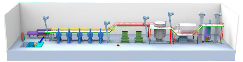 Собственное транспортное оборудование. Шнековые транспортеры и ковшовые элеваторы. Производительность до 240 т/сутки.